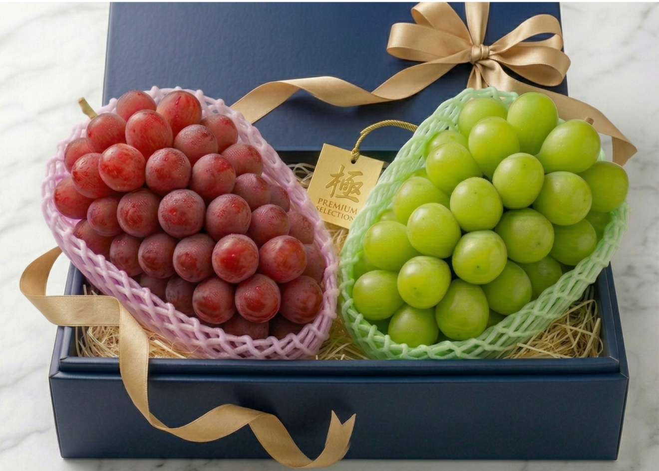 シャインマスカットの血を引く、山梨県オリジナルの希少な最新品種です。ルビーのように輝く果皮には美しいブルームがまとい、パリッとした歯ごたえと共に、華やかな香りと極上の甘みが口いっぱいに広がります。まだ市場に出回る数が少ない、まさに「幻のブドウ」です。